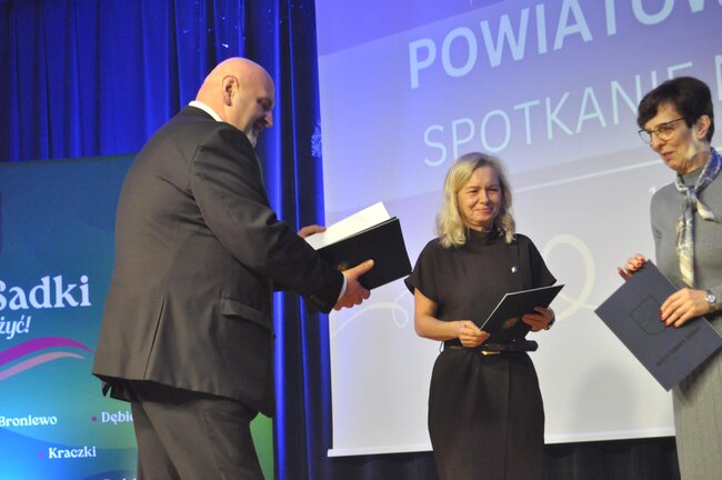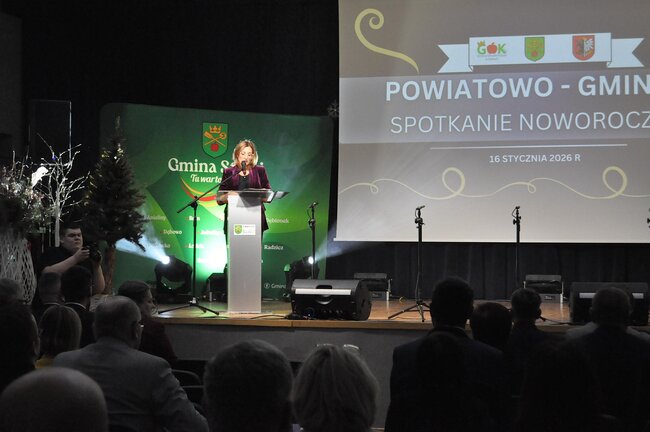 Po występie głos zabrał wójt gminy Sadki Michał Piszczek, który podkreślił czas intensywnej pracy, rolę współpracy, dziękował i złożył uczestnikom noworoczne życzenia. Gmina Sadki również przygotowała prezentację podsumowującą inwestycje przeprowadzone w 2025 roku. Kolejnym punktem było podsumowanie przez dyrektor Joannę Brzozowską całorocznych działań Gminnej Biblioteki Publicznej w Sadkach. Uczestnicy mieli także możliwość obejrzenia prezentacji przygotowanej przez Gminny Ośrodek Kultury w Sadkach. Po podsumowaniach, okolicznościowe przemówienie wygłosiła poseł na Sejm RP Iwona Kozłowska.