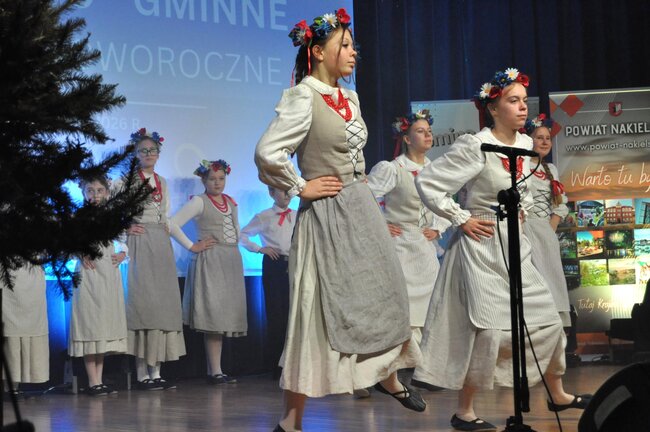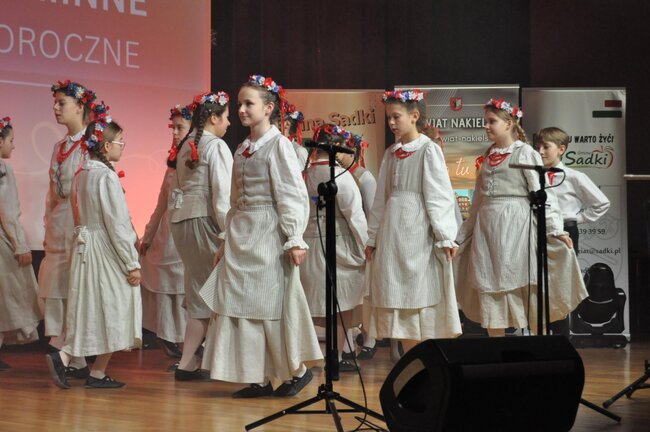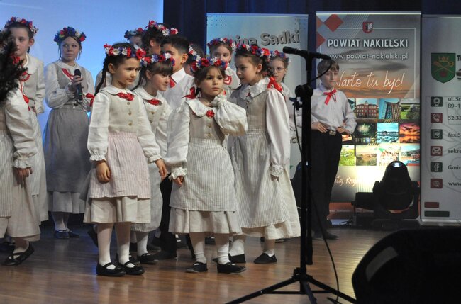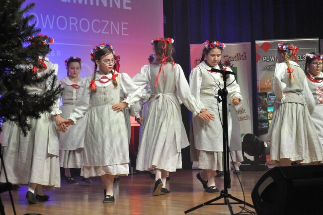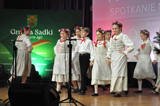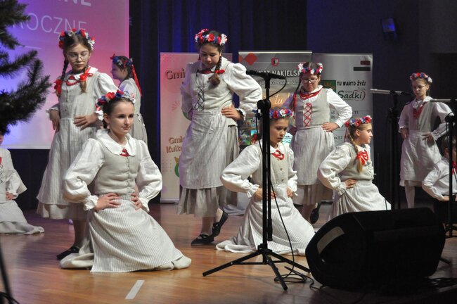 Następnie na scenę wkroczył Dziecięcy Zespół Folklorystyczny „Jabłoneczka” działający przy Gminnym Ośrodku Kultury w Sadkach pod kierunkiem Eweliny Gondek, który zaprezentował bogaty program artystyczny.