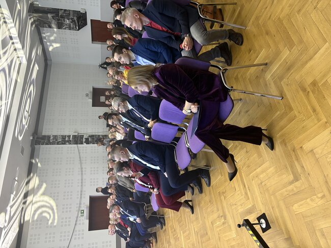 W dalszej kolejności głos zabrał starosta nakielski Krzysztof Błoński, który w swojej wypowiedzi podsumował 2025 rok, dziękował licznym osobom za udaną współpracę i złożył noworoczne życzenia. W formie prezentacji podsumowane zostały inwestycje przeprowadzone w minionym roku przez Powiat Nakielski oraz wydarzenia kulturalne.