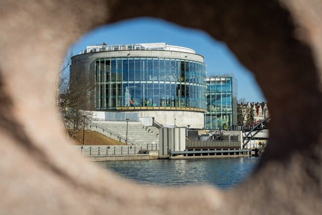 W nowym czterokondygnacyjnym skrzydle kompleksu – tak zwanym czwartym kręgu – oprócz operowej sali kameralnej (z fosą orkiestrową dla siedemdziesięcioosobowego zespołu i widownią na 500 osób), znajdą się przestrzeń wystawiennicza i sala kinowa. Rotunda z tarasem widokowym od strony Brdy, w której trwają obecnie prace wykończeniowe i instalacyjne, ma 6 tys. metrów kwadratowych i kubaturę 40 tys. metrów sześciennych. Powstający jednocześnie bardzo potrzebny w tym miejscu dwupoziomowy podziemny parking – ma być gotowy w połowie tego roku - będzie miał 212 stanowisk postojowych. Wartość inwestycji to ponad 190 mln złotych.