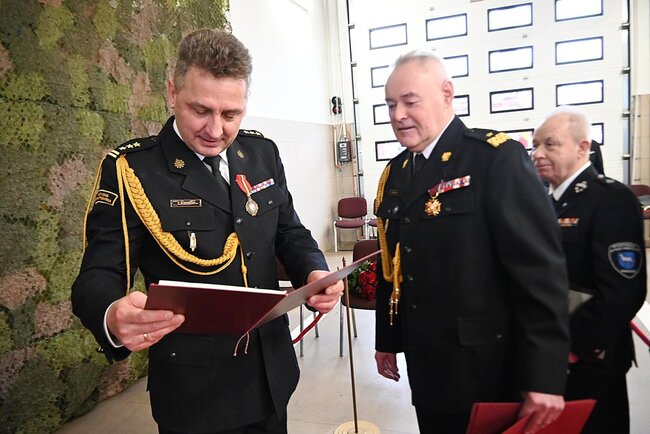Jednym z głównym punktów strażackiego apelu było jednak zdanie obowiązków służbowych przez Komendanta Powiatowego PSP w Nakle, st. bryg. Sławomira Murawskiego – który z dniem 30 stycznia 2026 roku przejdzie na emeryturę. – Chcę podziękować wszystkim za ponad 32 lata służby, z czego ponad 30 lat w nakielskiej jednostce (…) Moim życiowym pragnieniem nie było zostać strażakiem. W 1992 roku będąc studentem AWF w Poznaniu, rozpocząłem praktyki z uczniami i stwierdziłem, że to nie dla mnie. I wtedy moja przyszła teściowa zapytała mnie, czy nie chciałbym zostać strażakiem. Pomyślałem – dlaczego nie? Rozpocząłem przygotowania i już w kolejnym roku zostałem kadetem w Szkole Aspirantów (…) Dobrze pamiętam swoje pierwsze akcje ratownicze, pierwszy śmiertelny wypadek między Strzelewem a Minikowem, pierwszy duży pożar w Bninie. Takie zdarzenia zapadają w pamięć. Nauczyłem się tutaj w Nakle strażackiego życia. Moi dawni przełożeni pokazali mi, że wiedza, a umiejętność jej spożytkowania – wymaga ode mnie samokrytyki, pokory i ciągłej pracy. Nauczyli mnie, że w straży nie ma miejsca dla indywidualistów. Zawsze liczy się zespół (…) Moi drodzy współpracownicy – dziękuję Wam za wspaniałą pracę i brak konfliktów – powiedział ustępujący ze stanowiska komendant.