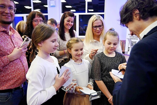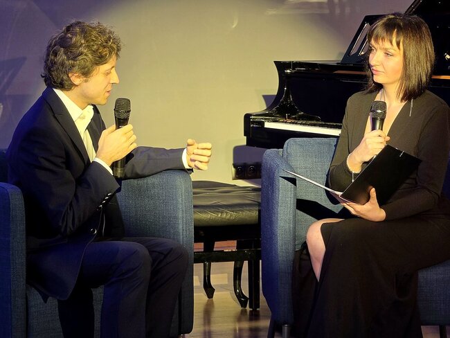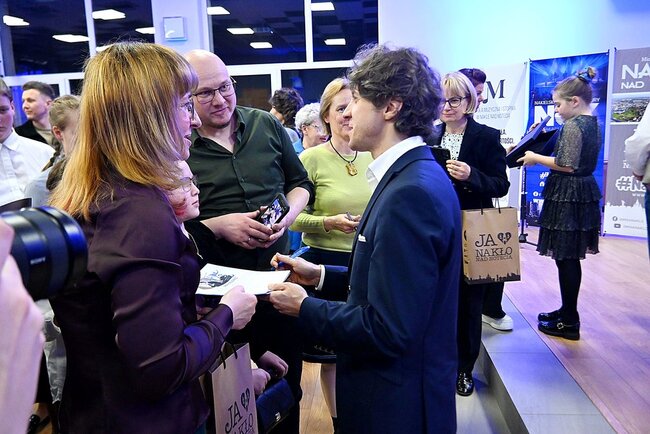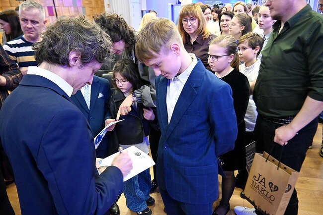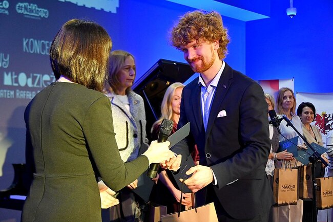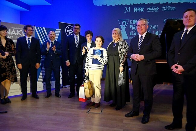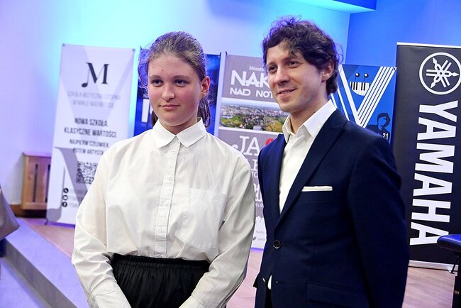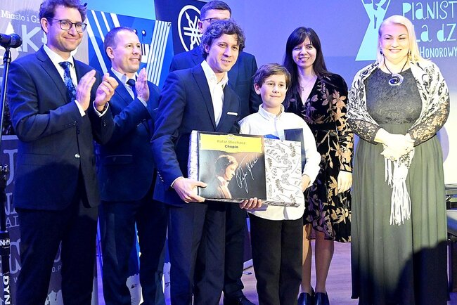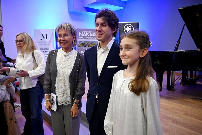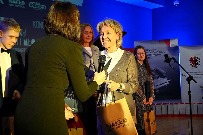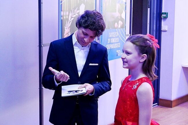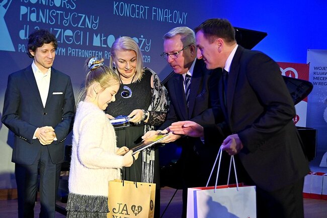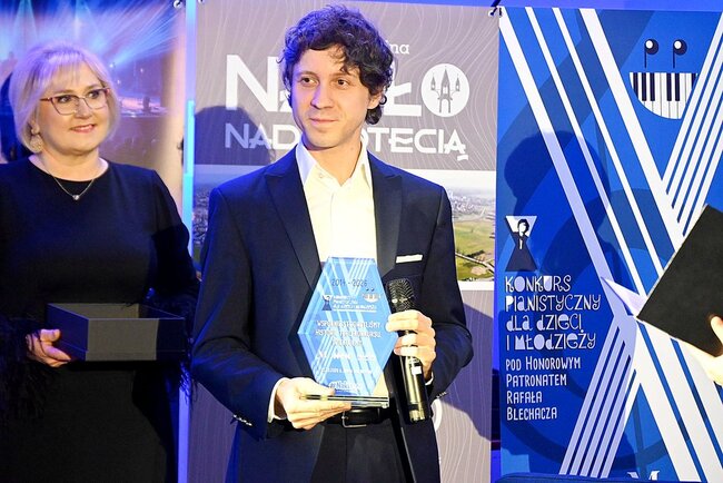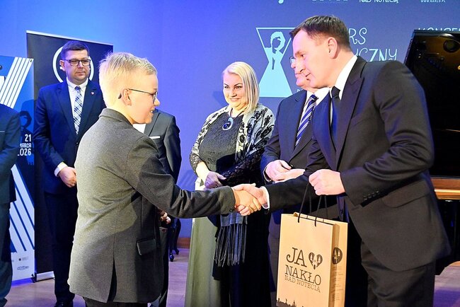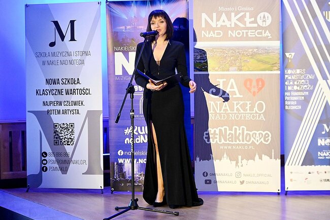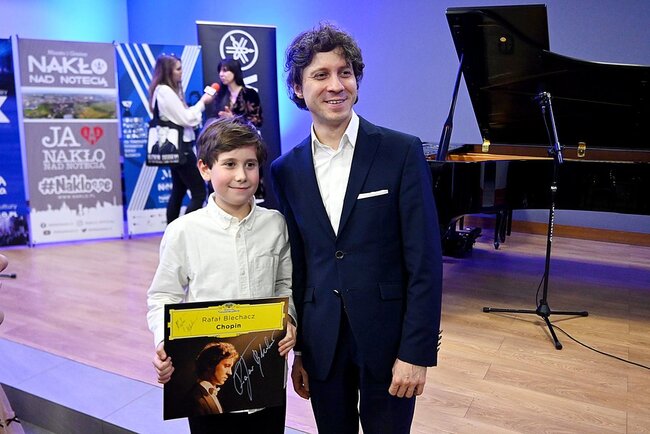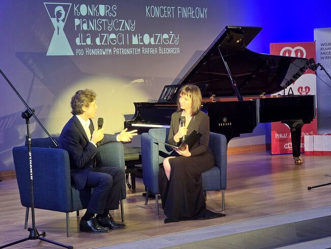 Zwieńczeniem dnia był uroczysty koncert finałowy, który rozpoczął się po godzinie 18:00. To właśnie wtedy publiczność miała okazję ponownie usłyszeć najlepszych uczestników oraz spotkać się z patronem wydarzenia – Rafałem Blechaczem, którego obecność była dla młodych pianistów ogromnym wyróżnieniem i inspiracją. Chwilę wcześniej dyrektor Szkoły Muzycznej I Stopnia w Nakle nad Notecią Beata Nehring przeprowadziła wyjątkową rozmowę z Rafałem Blechaczem, w której nie brakowało wspomnień, wzruszeń oraz przedstawienia najbliższych, muzycznych planów nakielskiego maestra.