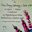 Miło nam również poinformować, że podczas konkursu na palmy wielkanocne w Parafii pw. Św. Wojciecha w Sadkach Dom Pomocy Społecznej zdobył I miejsce w kategorii: Prace zbiorowe dorosłych. To wyróżnienie jest efektem zaangażowania, kreatywności i wspólnej pracy mieszkańców oraz pracowników naszego Domu.