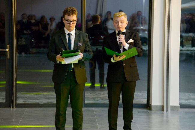 Wieczór z wdziękiem i poczuciem humoru poprowadzili Dawid Sikorski oraz Aleksander Leks, dbając o doskonałą atmosferę i niezapomniany charakter wydarzenia. Nad swoimi wychowankami z dumą czuwali wychowawcy: Ewa Tetzlaff oraz Małgorzata Piasecka.