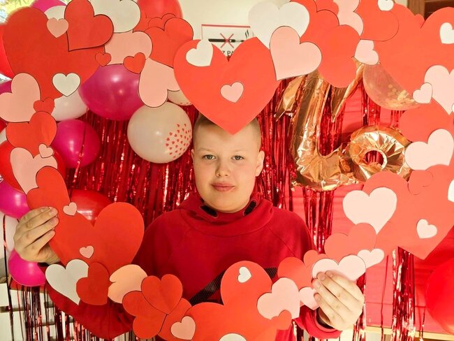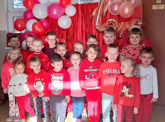 Nie zabrakło też czerwonej, serduszkowej ścianki, przy której uczniowie robili sobie pamiątkowe zdjęcia z kolegami i koleżankami.