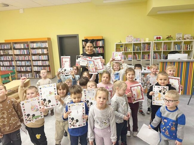 Wszystkie dzieci znają postać Mikiego. Wspólna zabawa w bibliotece