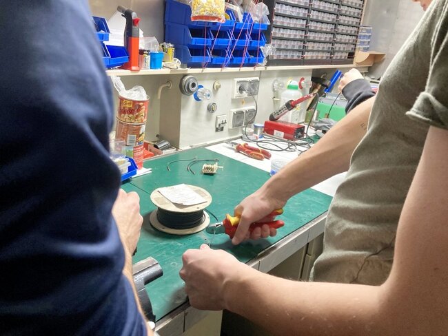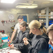 Dużym zainteresowaniem cieszyły się podstawy lutowania. Oficer elektryk przeprowadził zajęcia dla chętnych w dwu grupach. Lutowanie to metoda łączenia metali za pomocą spoiwa, w tym przypadku była to cyna. Bardzo zgrabnie poradziły sobie z zadaniem dziewczyny (Martyna, Iga, Agata) a oficer nie szczędził pochwał.